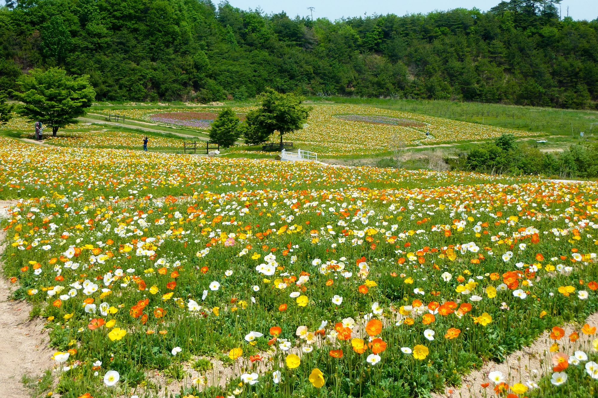 広島県の中央に位置する世羅町は、標高350mから450mにあり穏やかな気候と風土に恵まれたところです。そのため農業が盛んで、世羅米をはじめ、梨、ぶどう、松茸等野菜の農産物の産地でもあります。また、芝桜、ゆり、バラ、チューリップ、ひまわりやラベンダーなどの花農園も人気の観光スポットになっています。
