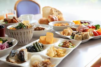 Our breakfast buffet is available for 2,500 yen. We invite you to savor a wide variety of approximately 45 Japanese and Western dishes, all showcasing the delicious flavors of local ingredients. Highlights include bacon and sausages sourced from a local butcher, as well as our rotating daily specials of Okayama's famous local cuisine.