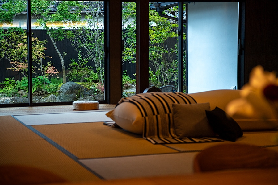 | 特長 | 門をくぐって、今日の泊まるところはどんなとこだろうと期待に胸を膨らませながら、歩いていただけるように造りました。昔から多くの家には庭や緑があり、それも再生したことも特徴の一つです。 |