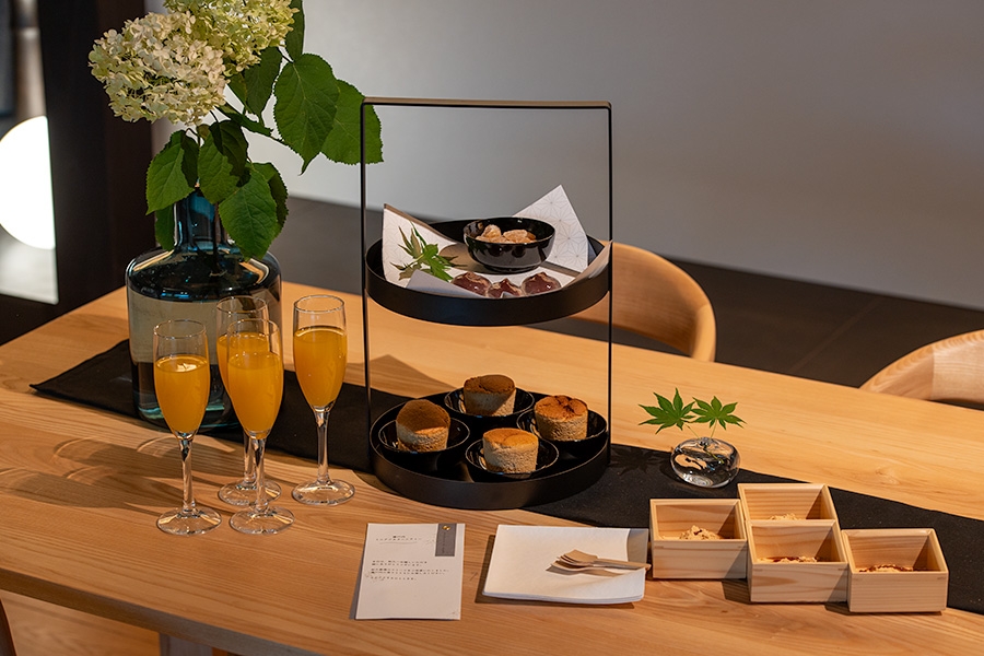 | 特長 | お食事はこちらでお召し上がりいただけきます。広いテーブルにゆったりとお座りいただき、ごゆっくりお食事をお楽しみいただけたら幸いです。 また、ウェルカムサービスは「瀬戸内ミニアフタヌーンティー」と銘打ち、周防大島の蜜柑ジュースや和久水オリジナルのブレンドコーヒーと共に季節ごとに変わる和久水厳選のミニアフタヌーンティーをプライベート空間の中でお愉しみいただいております。 |