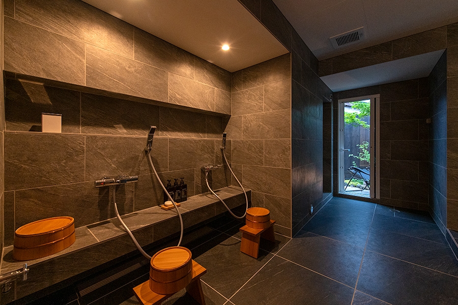 お風呂にはサウナがあります。天然の精神安定剤と言われる蜜柑の爽やかな香りが心を穏やかにしてくれます。サウナで火照ったからだを五右衛門風呂の水風呂でととのえてください。(氷のご用意可)お子様には、庭で水遊びを楽しんでいただけます。また、室内には忍者屋敷のような隠れた遊び場があります。ぜひ見つけて楽しんでください。