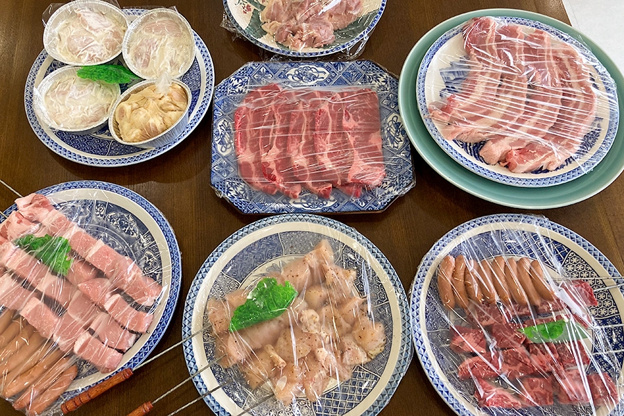 夕食は、BBQや千鳥旅館のオプション料理をご利用いただけます。また竜崎温泉の食事処もご案内できます。またキッチンも備えており、自炊も可能です。朝食は、パンコッペのパンをご準備いたします。すべて有料です。事前のご予約をお願いします。BBQをご希望の場合、有料にてBBQセットの貸出しもございます。手ぶらでお越しくださいませ。