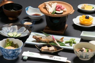 日本海の鮮魚、川魚、山の幸など近くで採れるものを料理いたします。材料を厳選しておりますので、薄味で素材の美味しさを味わっていただけたら、と思います。長期滞在の方には、体のことを考えて品数が少なくなり、家庭料理となります。