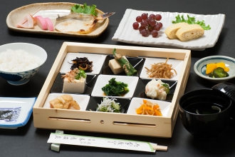 ご夕食は瀬戸内の旬の食材を使用し、真心こめて調理した、「和食膳」をご用意いたします。12月から3月までは小鍋」は、牡蠣鍋 又は 和牛すきやき揚げ物」は、カキフライ 又は 季節の天ぷらから、それぞれお好きな方をお選びください。(予約時にご希望のお知らせください)