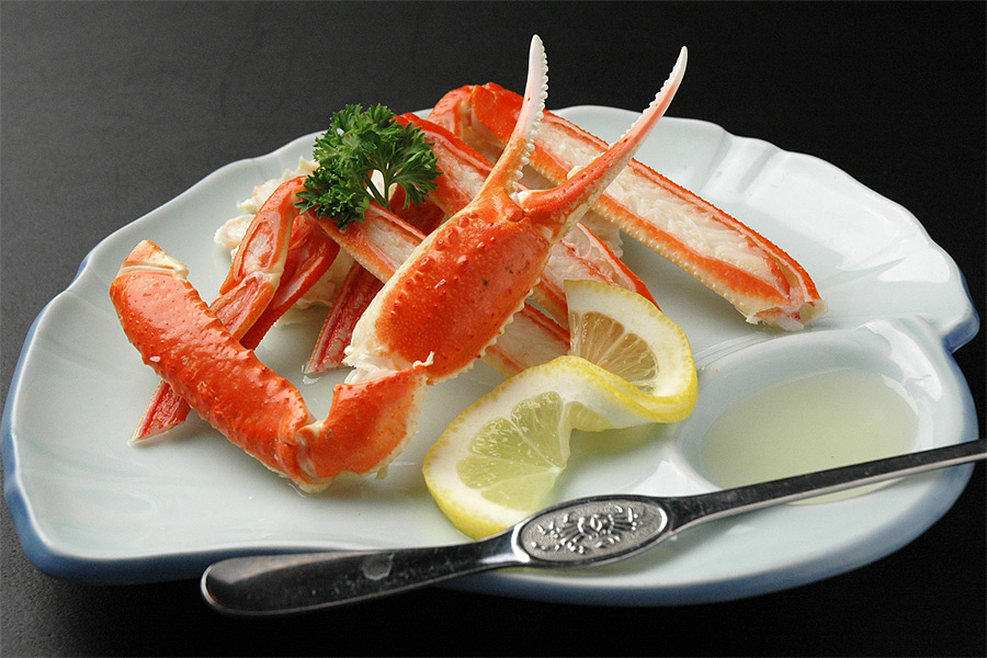 旅の楽しみは、なんといっても土地の味を食すこと。当館目の前の境港で捕れた魚介類を使い、味覚は秀逸そのもの。また、冬の松葉ガニは、いけすで生かし、新鮮さも工夫しています。四季を通じて磯料理、郷土料理がご堪能いただけます。