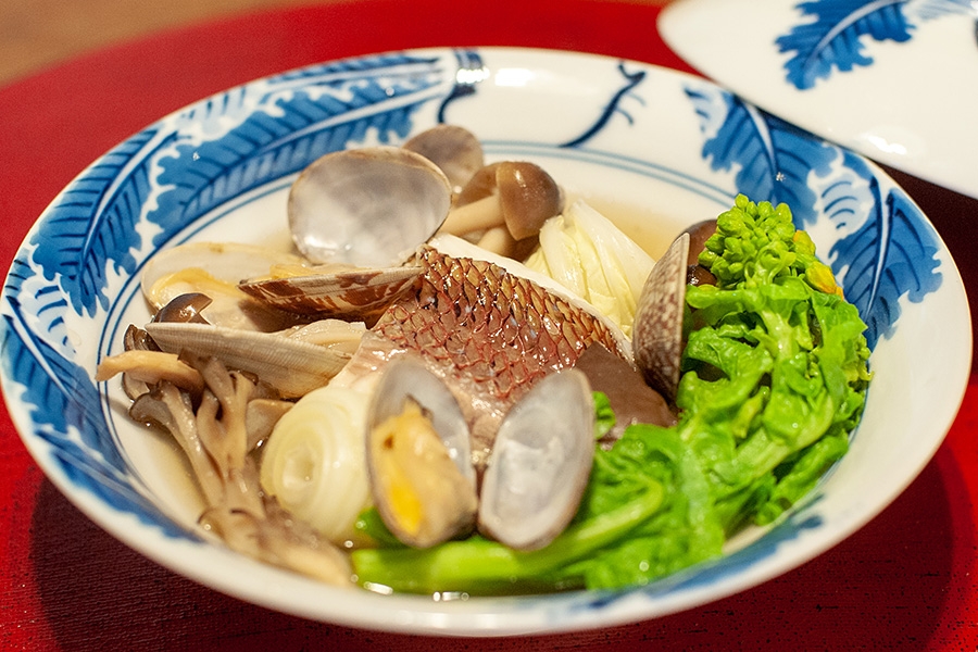 朝食は、御舟宿いろはの看板料理、「鞆の浦の名物 鯛を使った和御膳」(店舗でのお食事)をオーダーすることができます。