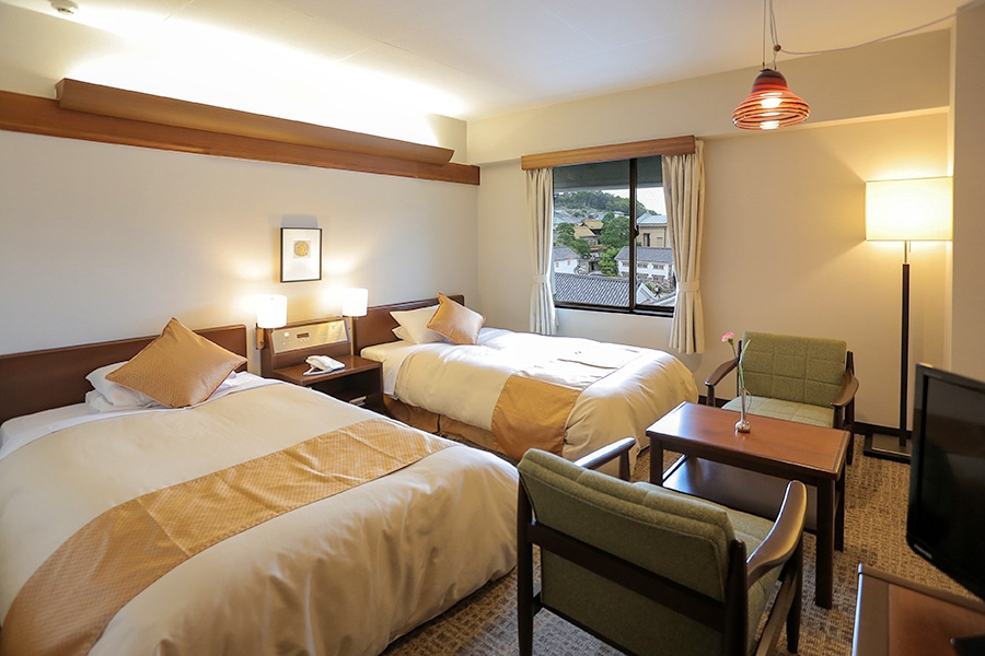 特長 | 空間の余裕を感じさせるデラックスツインです。 |