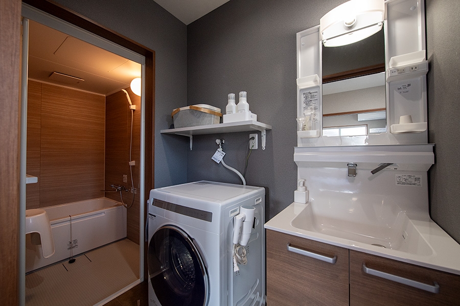 設備 | 1〜2名様まで、エアコン、トイレ、洗面所、キッチン(調理器具・電子レンジ)、テレビ(ネット動画配信サービス)、洗濯機、Wi-Fi、掃除用具、ハンガーラック、部屋着、洗剤、洗面セット、バスセット、お茶セット |